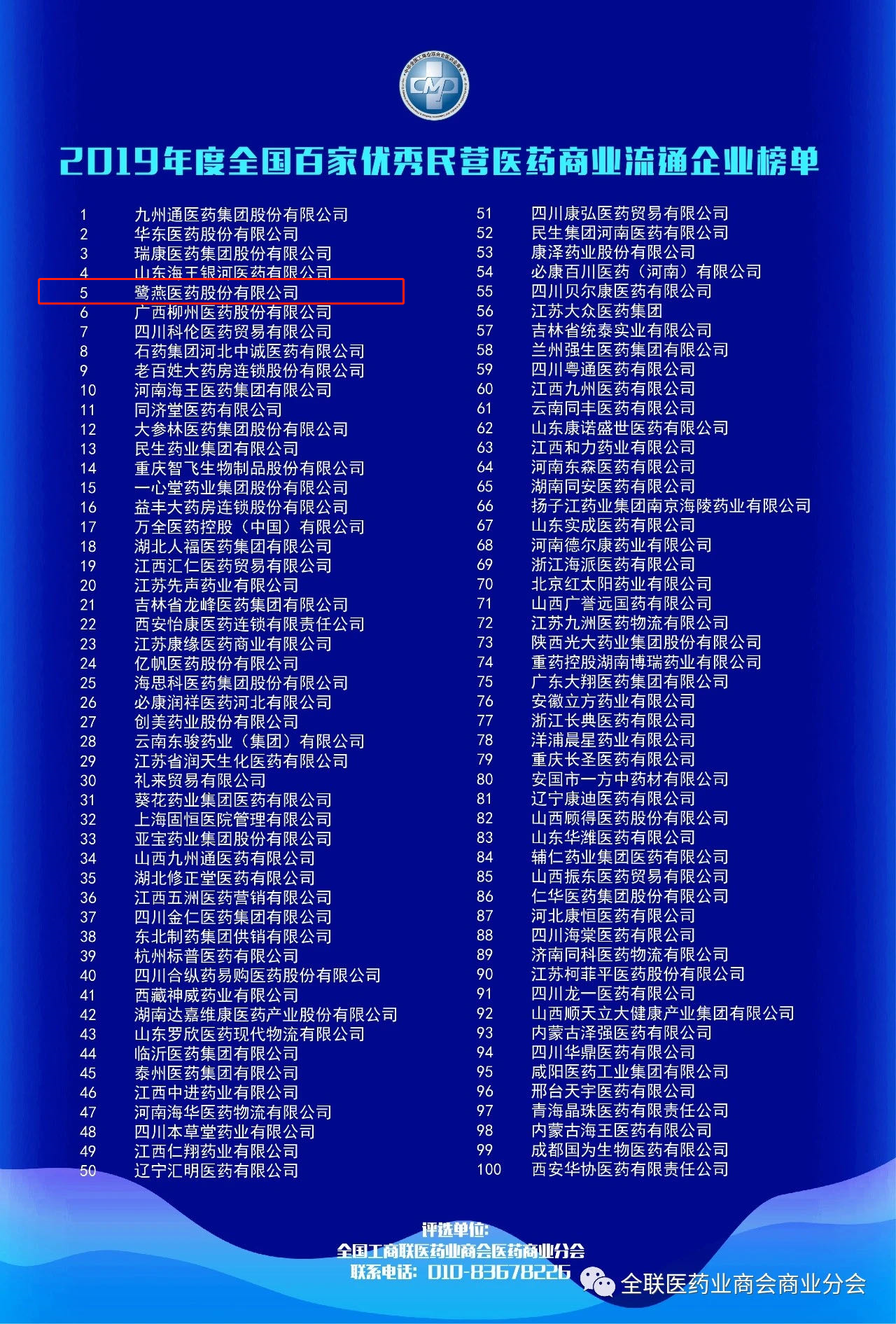 2019年度全國百家優秀民營醫藥商業流通企業榜單發布